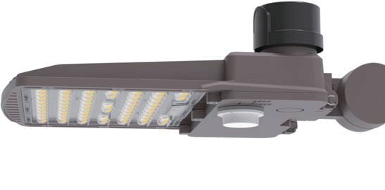Die-cast aluminum area light with adjustable CCT & power. Type II, III, IV, V optics. 6,600-61,000lm. Various mounts/controls. Dimensions vary by size (Medium: 100W-180W, Large: 250W-400W) and mounting type (Arm, Slipfitter, Wall, Yoke, Adjustable Square). Refer to diagrams on page 5