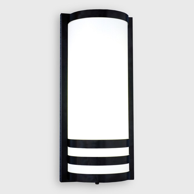 An attractive and sleek outdoor wall sconce. This fixture has an aluminum construction, a bronze powder-coated finish, and a white acrylic diffuser.
